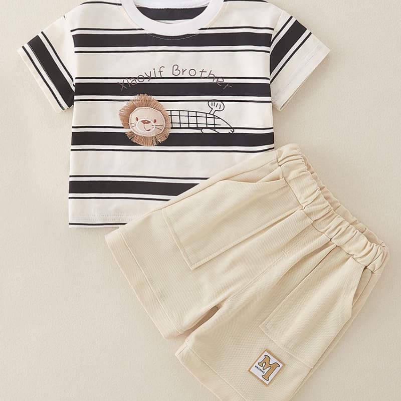 新作ベビー・幼児用夏服 Aクラス純綿男の子短袖短パンツセット 中小男児童装