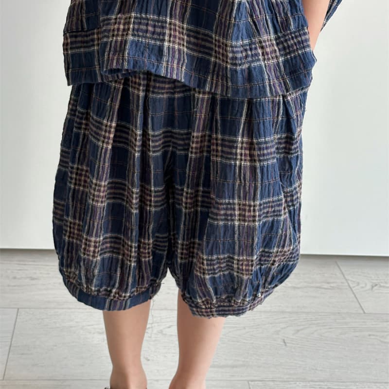 2025夏新作 男の子 チェック柄 リネン混 ベスト×ハーフパンツ 2点セット