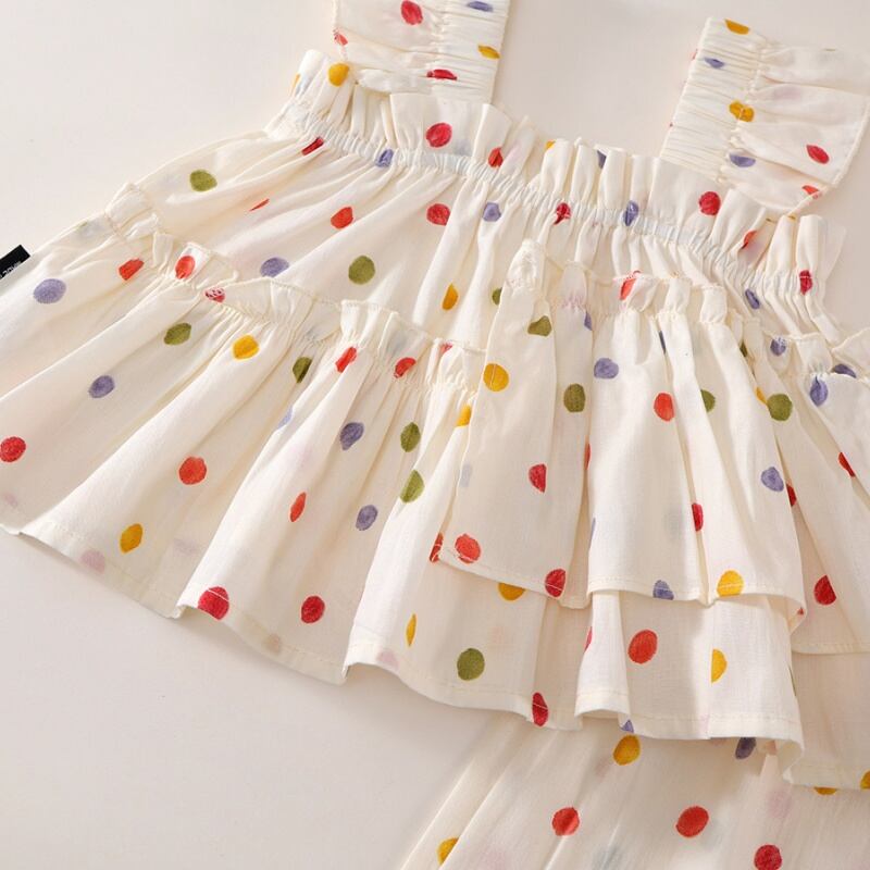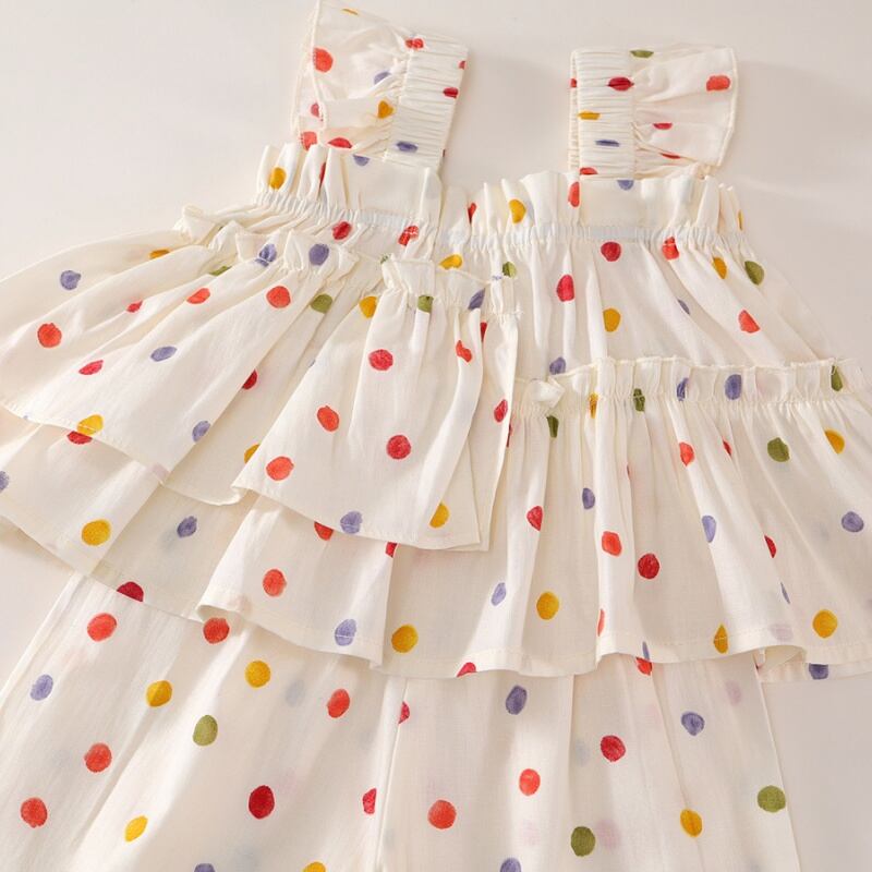 【2025新作】女の子 カラードット セットアップ タンクトップ ワイドパンツ 2点セットおしゃれ