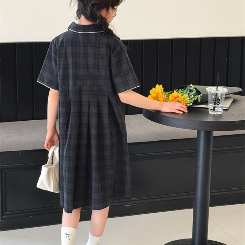 ダークグリーンチェックワンピース 2025年夏 新作 女児用