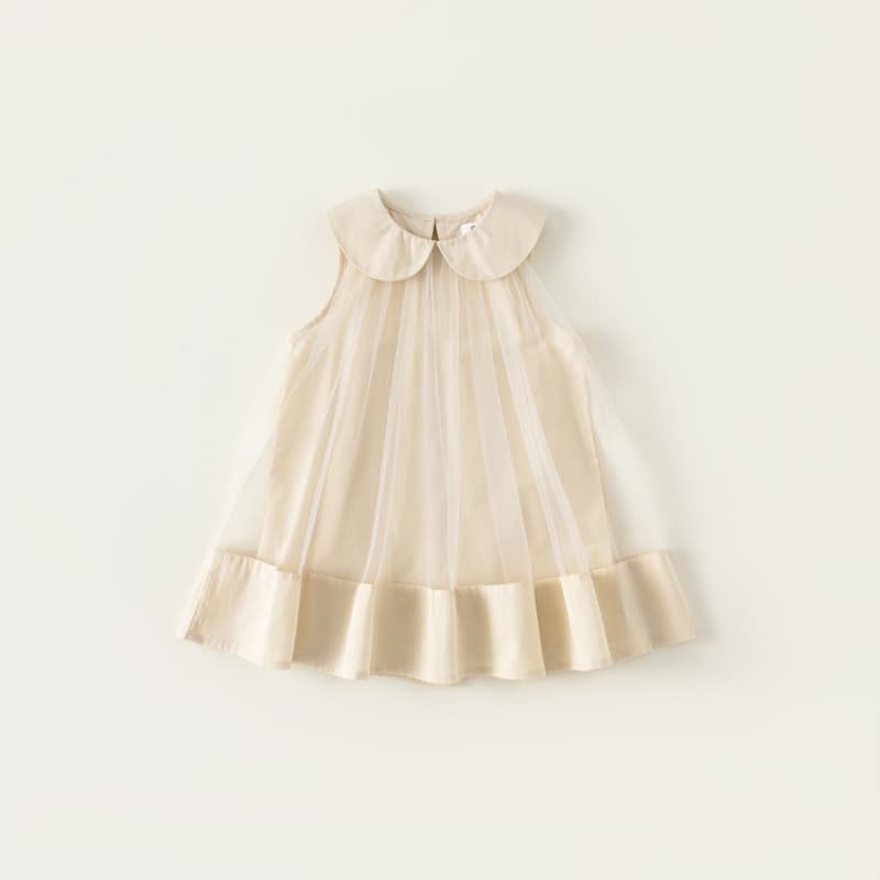 女の子用 チュールプリンセスワンピース ノースリーブ ベビーカラー付き