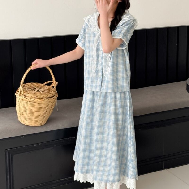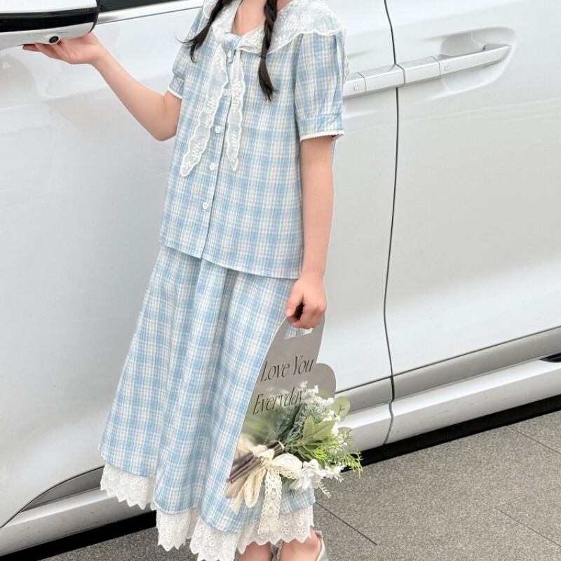 レースカラー半袖&レーススカートセット 2025年夏 新作 女児用