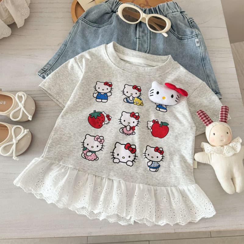 女の子半袖Tシャツ 夏用 キッズ キティ猫 新作 甘い風 肌着Tシャツ
