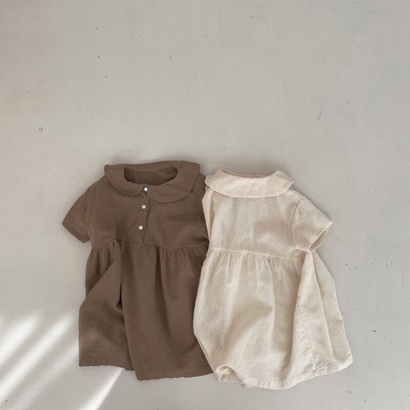2025新作女の子夏ワンピース ベビー インスタ映え日韓風丸リボンカラー 半袖プリンセスドレス