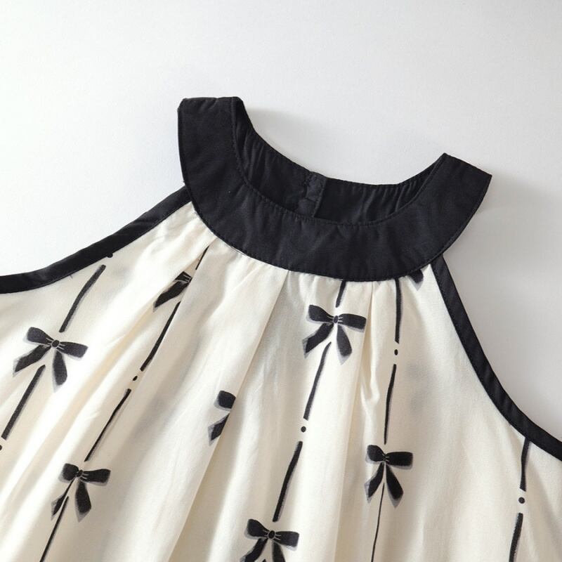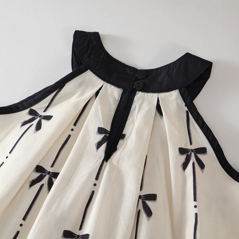 女の子綿100% プリントセットアップ ノースリーブ掛け首トップス ワイドパンツ 2点セット デザイン性豊か