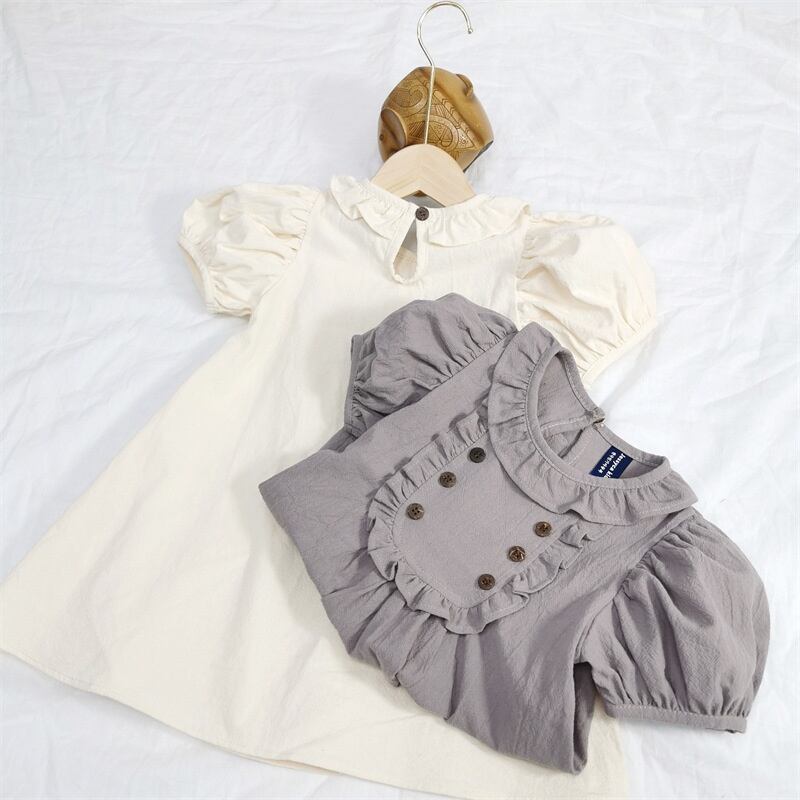 インスタ風 女の子 夏 ワンピースおしゃれ フリルカラーパフスリーブ かわいい ドレス