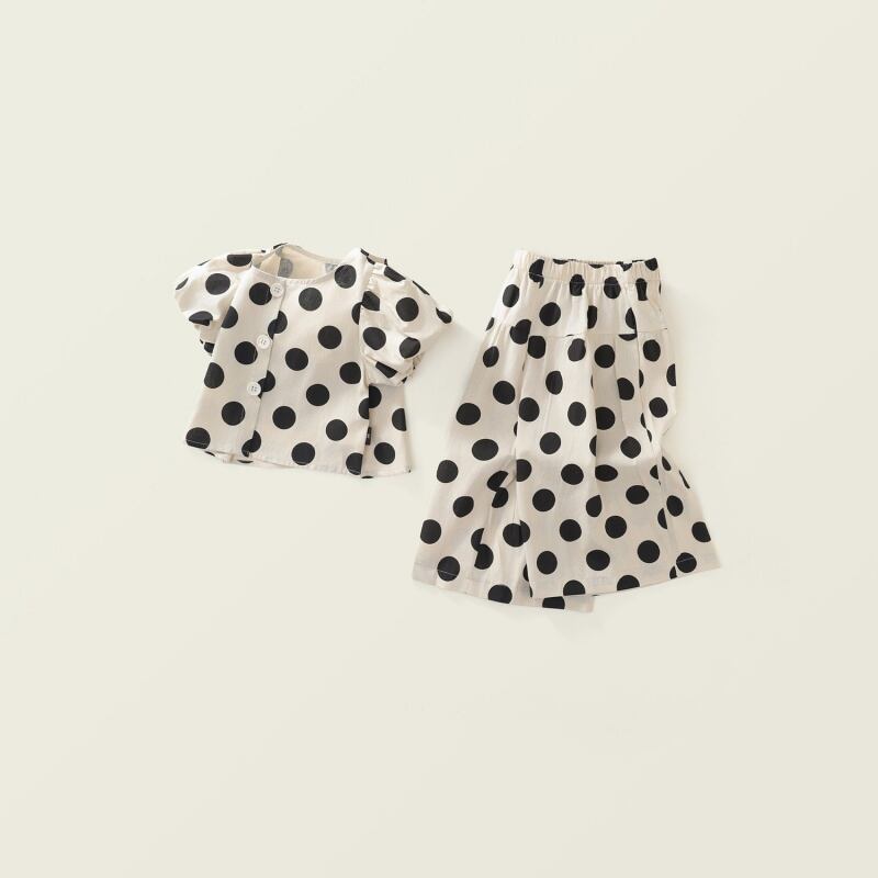 【2025夏】女の子 水玉 セットアップ 韓国風 半袖 ワイドパンツ 2点セット 綿100% 90-140cm おしゃれ