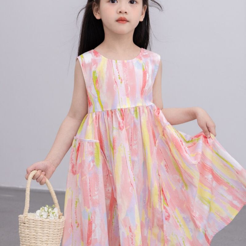 女の子ワンピース 綿100% フローラル プリンセス ドレス 3~8歳 キッズ 子供 夏服 サマードレス おしゃれ