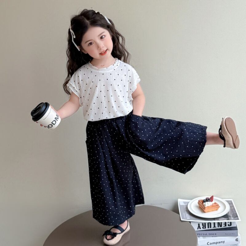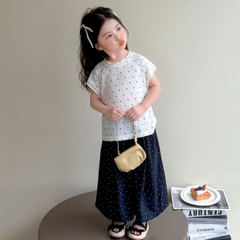 半袖 ワイドパンツセット ドット柄 2025新作 女児用