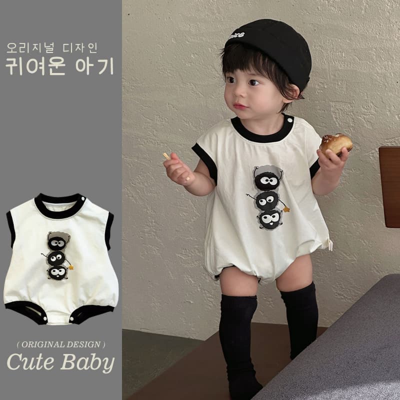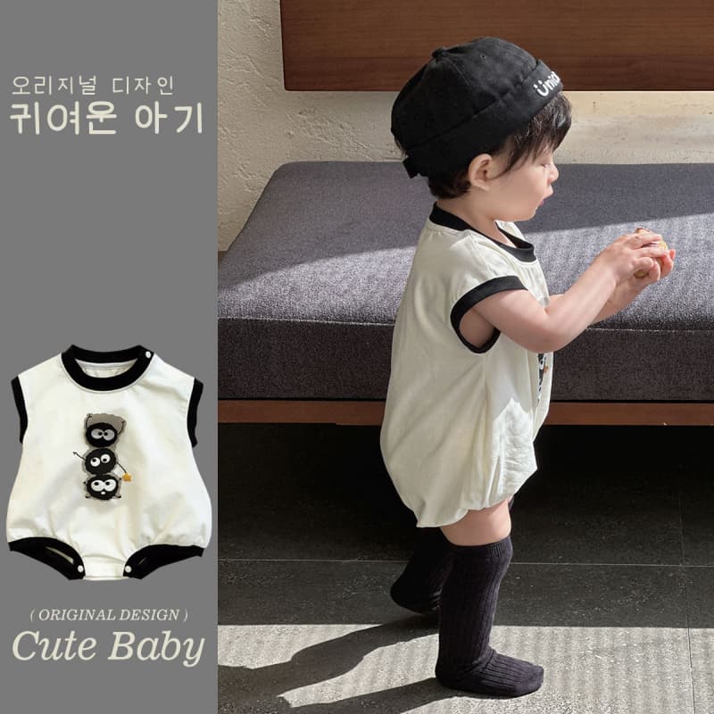 2025夏新作 ベビーロンパース 薄手 ノースリーブ キャラクター「ススボール」A類 肌に優しい クロール服