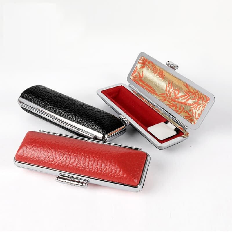 【日本製】姓名印鑑用PU皮革ケース 亀鶴文様錦織り枝紋入り(朱肉付属)
