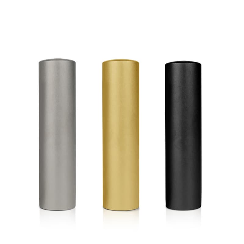 チタン金属丸印鑑-日本輸出用-光沢彫刻-銀色-金色-黒色サンドブラスト仕上げ-丸型寸胴