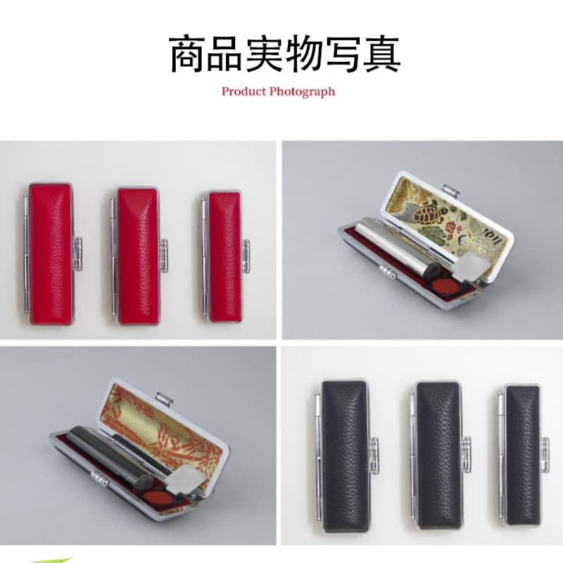 銀縁赤竹PU丸印鑑ケース(朱肉付き)日本向け