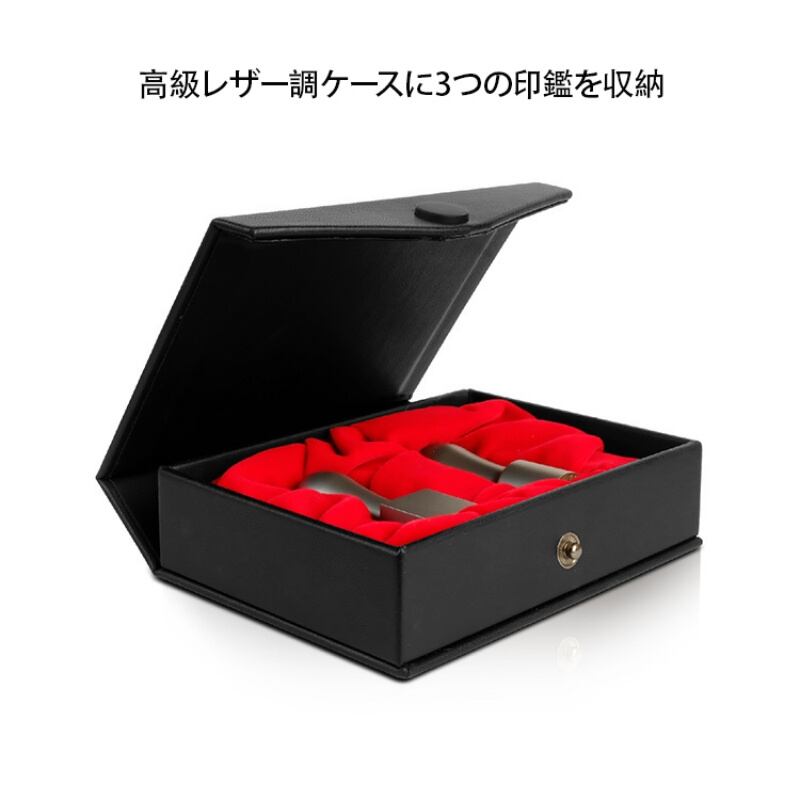 法人・個人用3点セット 和風印鑑ケース レザー調収納ボックス 蔵書印・篆刻材料付き