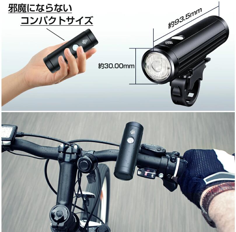 自転車 ライト LED USB充電式 最大18H連続 4つ調光モード 高輝度 IPX6防水 コンパクト 軽量 クロスバイク