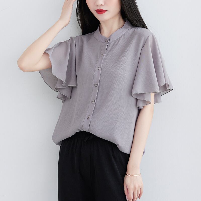 レディースTシャツ トップ 無地ルーズフリル半袖シャツ 夏