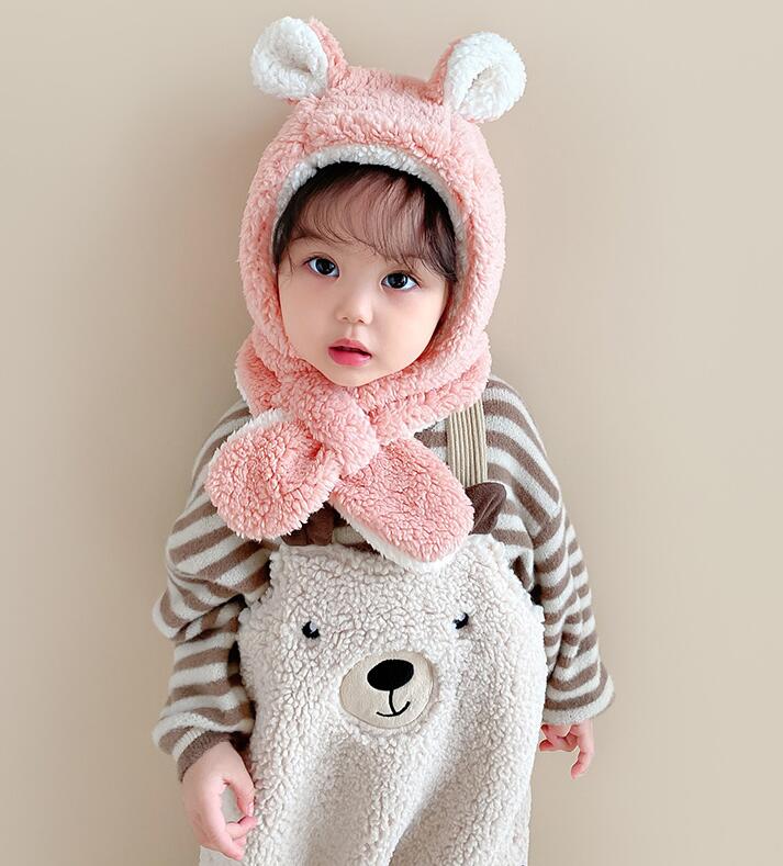 2022子供用帽子★秋冬アイテム★暖かい帽子★キッズ帽子★ニット帽子マフラー付き 両面着