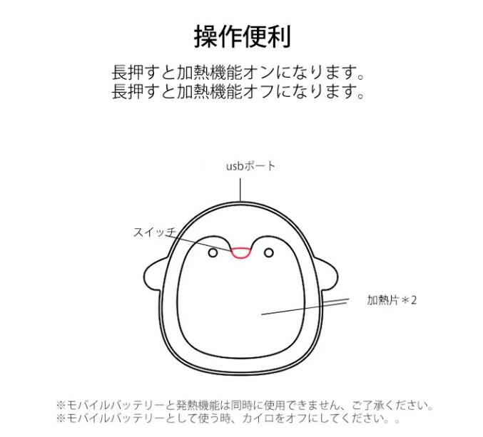 電気カイロ 充電式カイロ ハンドウォーマー 3600mAh USBカイロ 携帯式 かわいい 寒さ対策 繰り返し使える