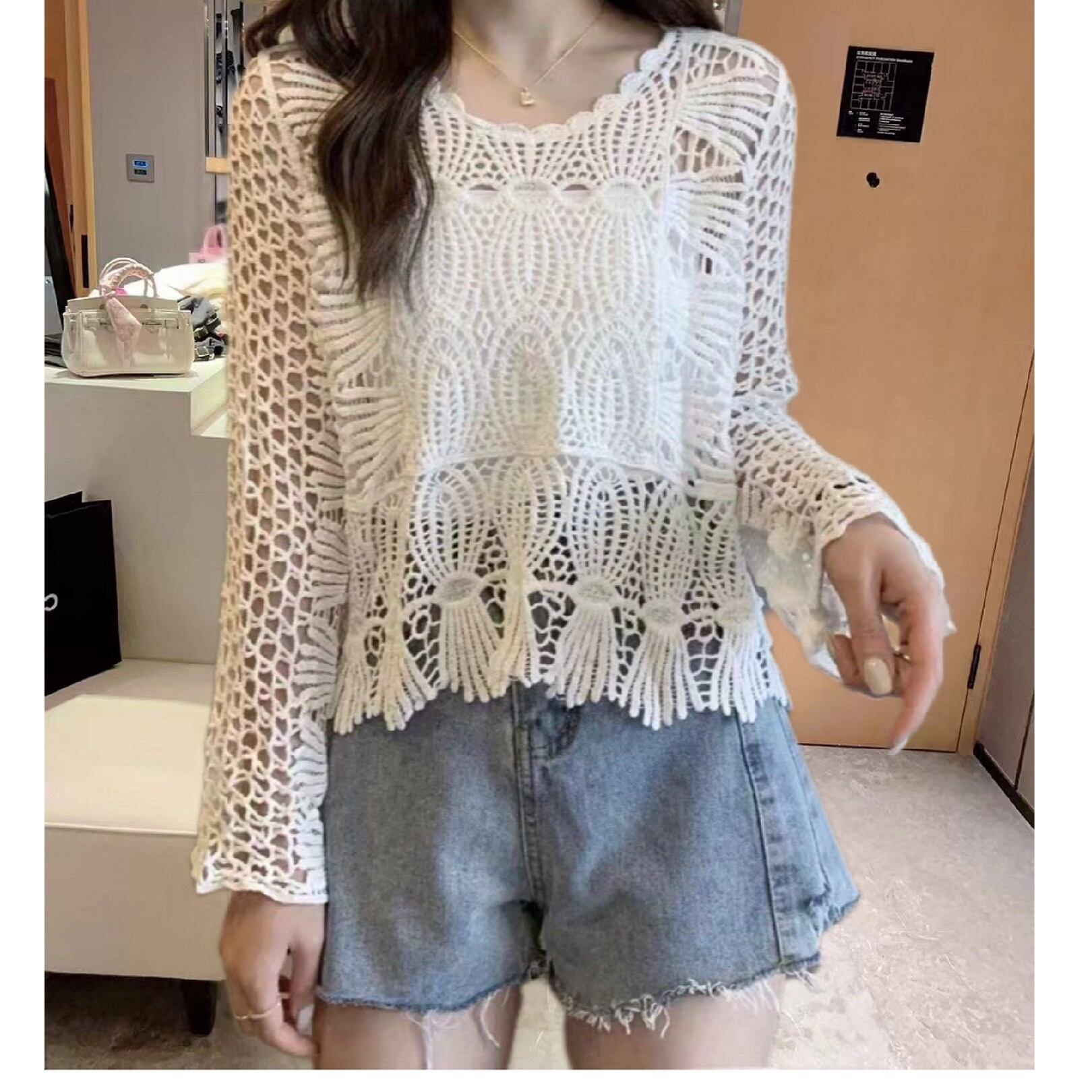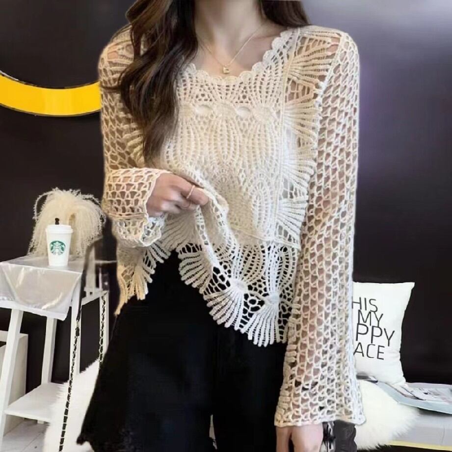 初回送料無料 丸首レース長袖トップス レーディスファション商品 カジュアルトップス 人気上着