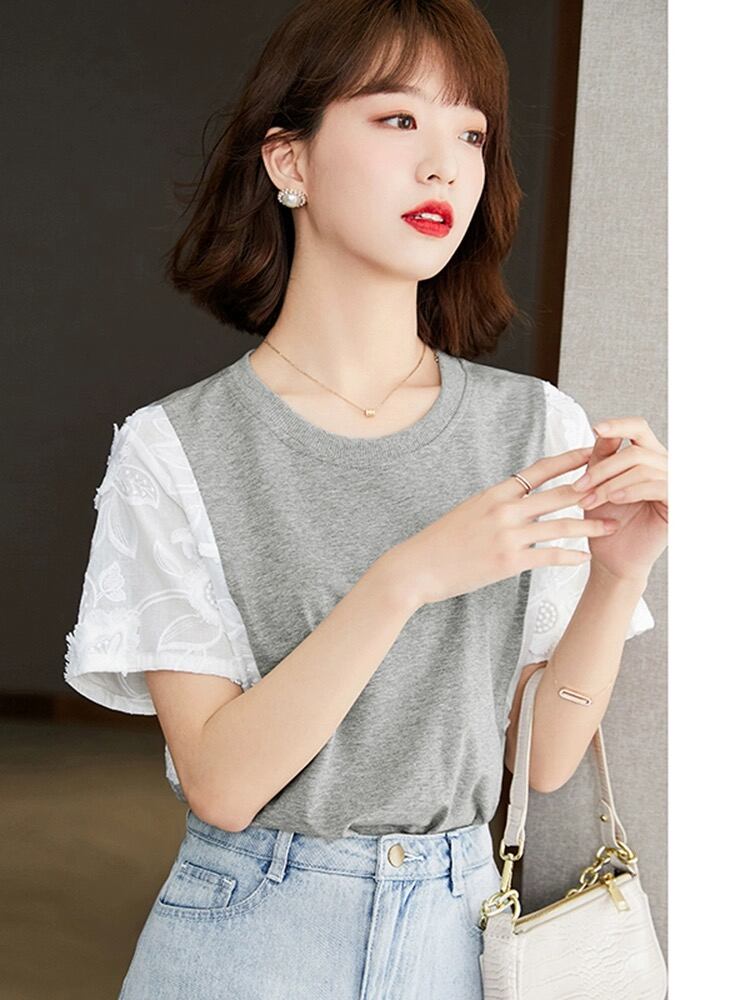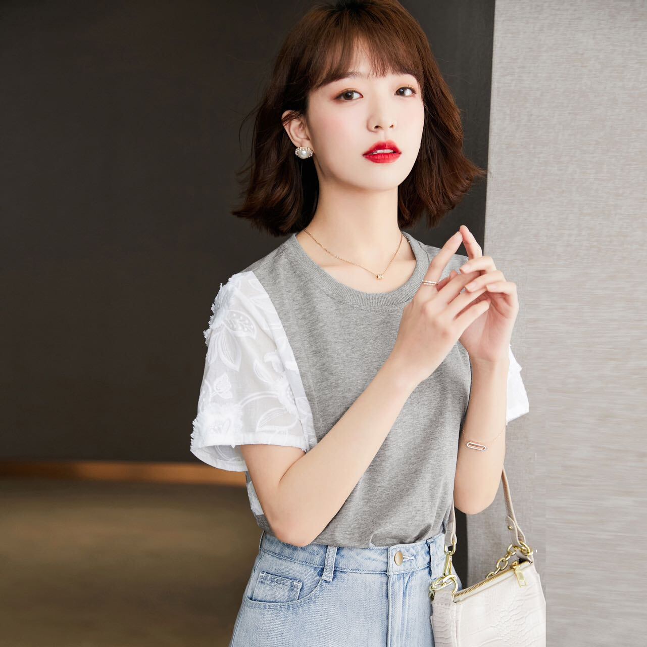 初回送料無料 半袖Tシャツ レース切り替えトップス ブラウス トップス人気商品