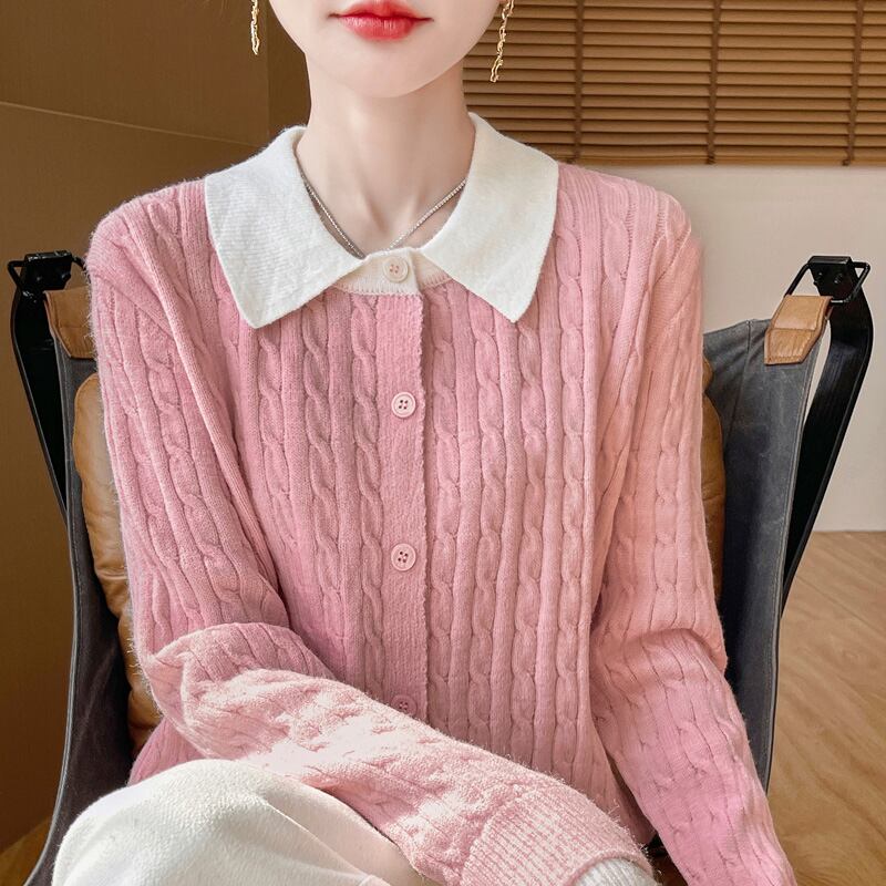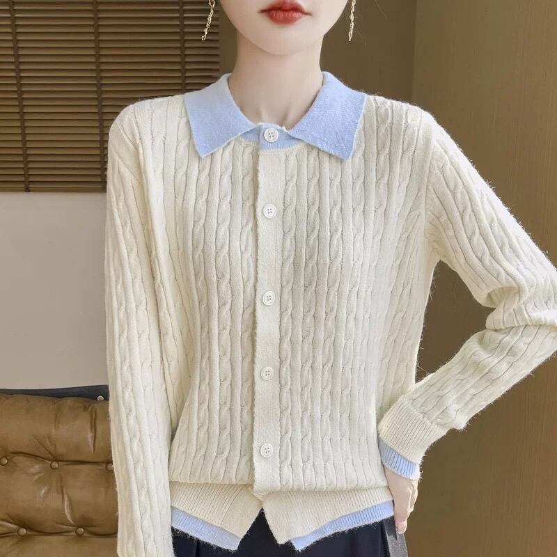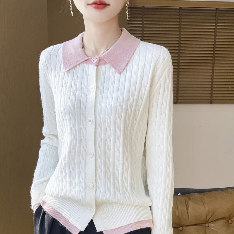 初回送料無料 秋冬レディースファッション カジュアル パッチワーク 色合わせ カーディガン上着