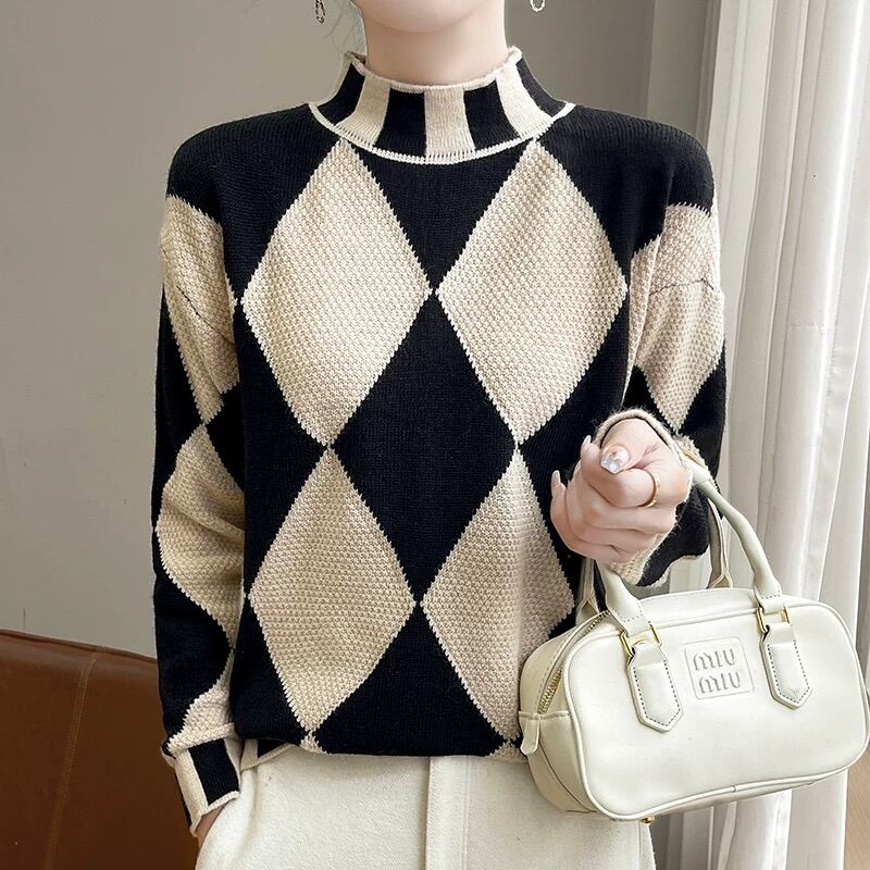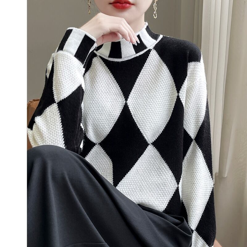 初回送料無料 秋冬レディースファッション ニットセーター 色合わせ ハイネック トップス