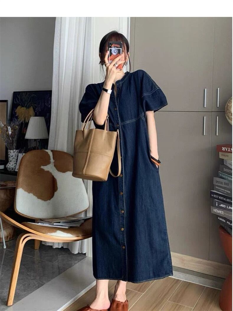 初回送料無料 新作レディースファッション Vネック デニム カジュアル ゆったり 半袖ワンピース