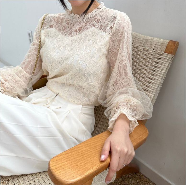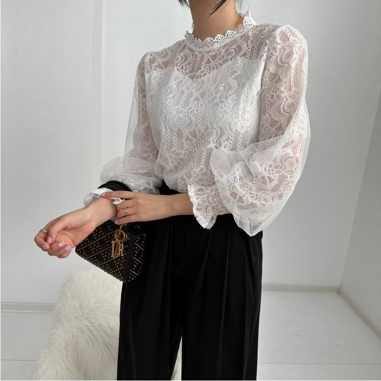 初回送料無料 長袖上着 レーススタンドカラーインナートップス レーディスファション商品