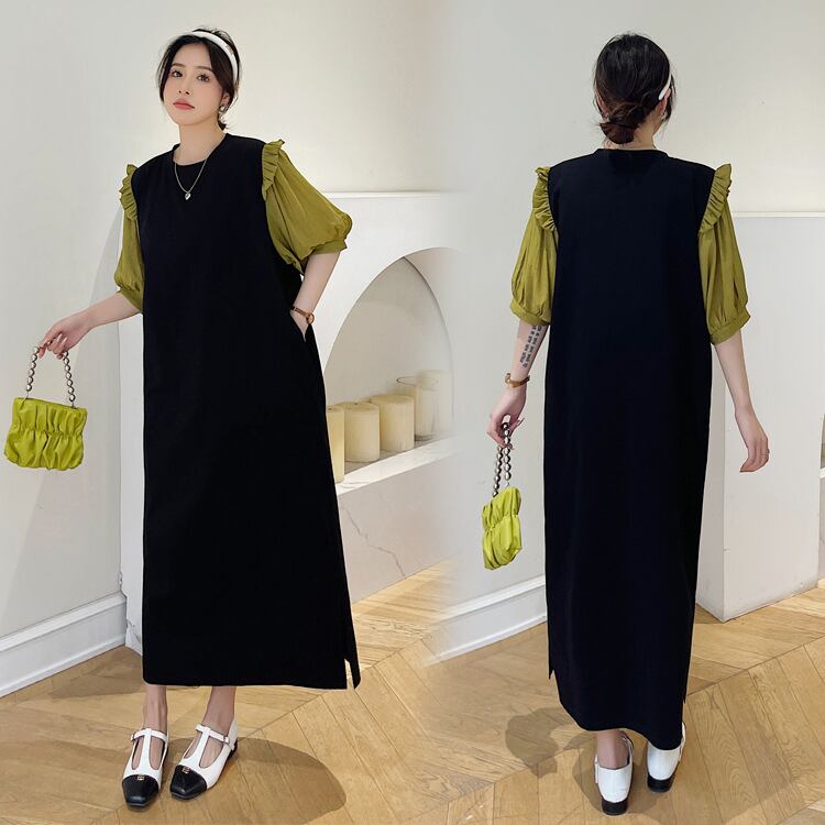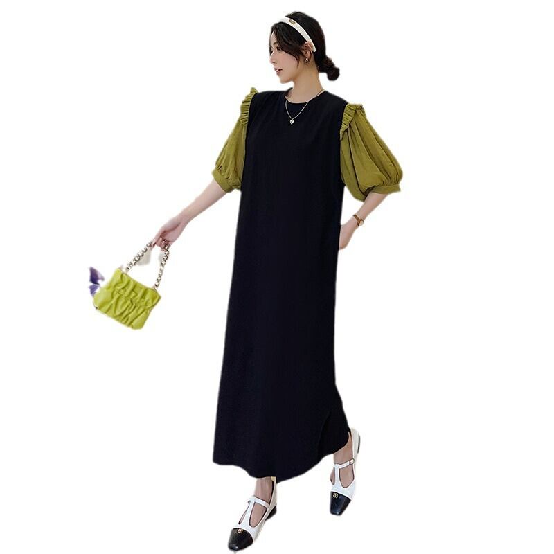 初回送料無料 新作レディースファッション カジュアル パッチワーク 色合わせ 半袖ワンピース