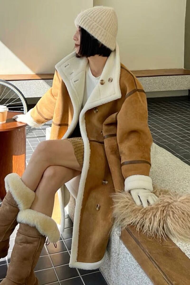 初回送料無料 ミディアム丈の綿入れのコート ラムの毛 レーディスファション商品 人気コート