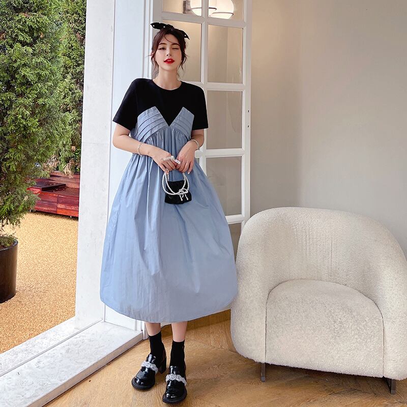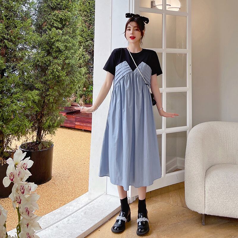 初回送料無料 新作レディースファッション カジュアル フェイク2枚 色合わせ 半袖ワンピース