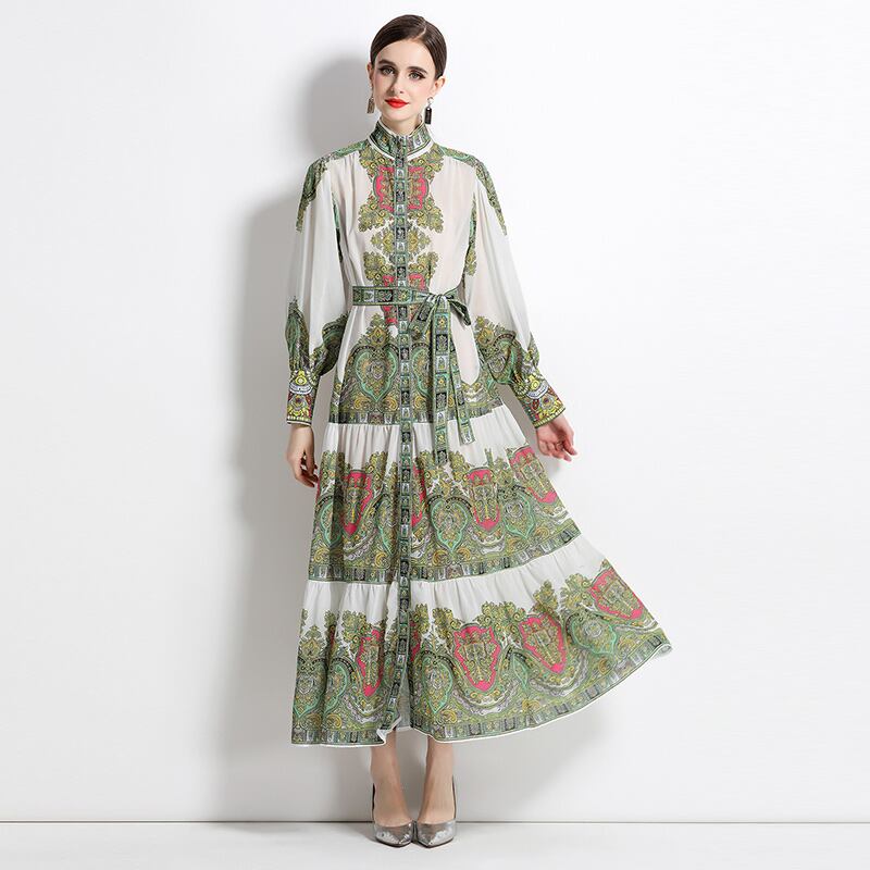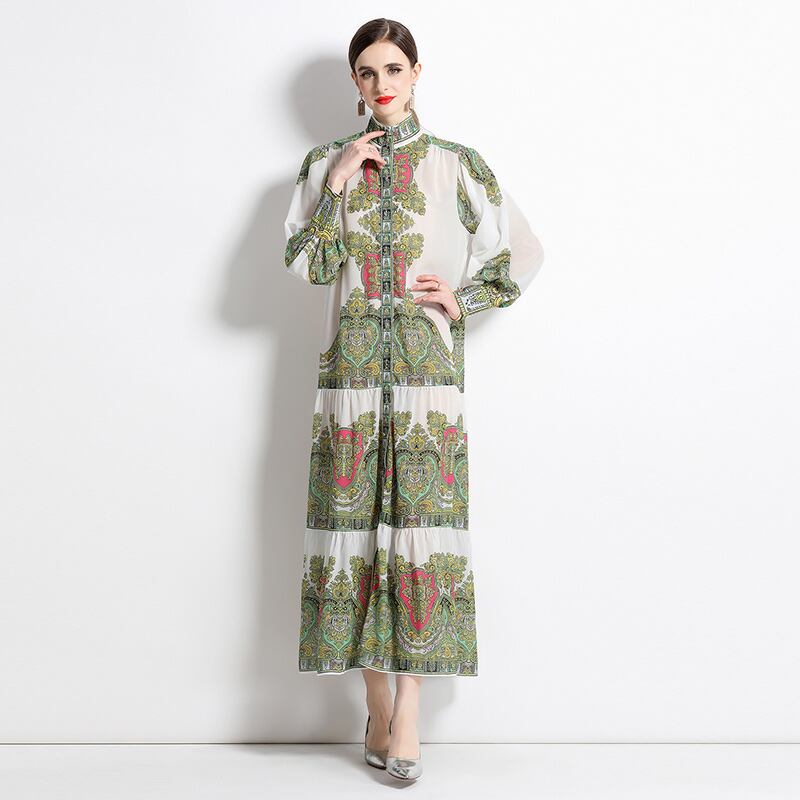 初回送料無料 レーディスファション長袖ワンピース プリントワンピース おしゃれワンピース