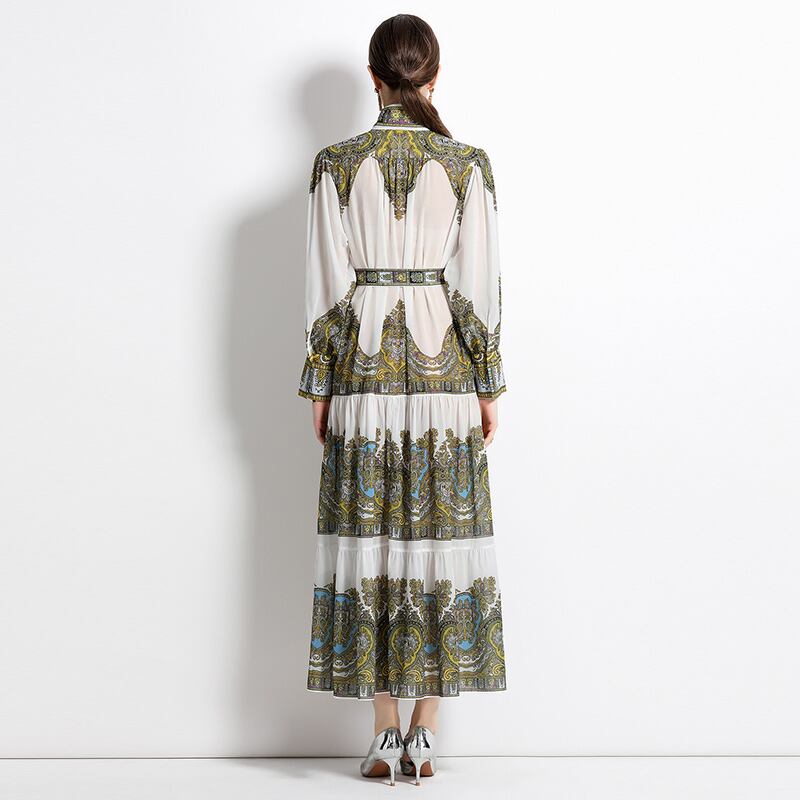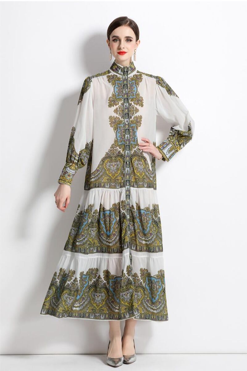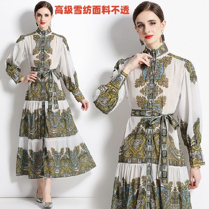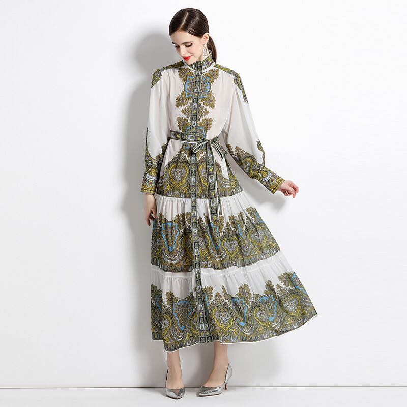 初回送料無料 レーディスファション長袖ワンピース プリントワンピース おしゃれワンピース