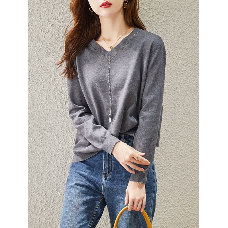 初回送料無料 新作レディースファッション カジュアル Vネック プルオーバー 長袖 トップス