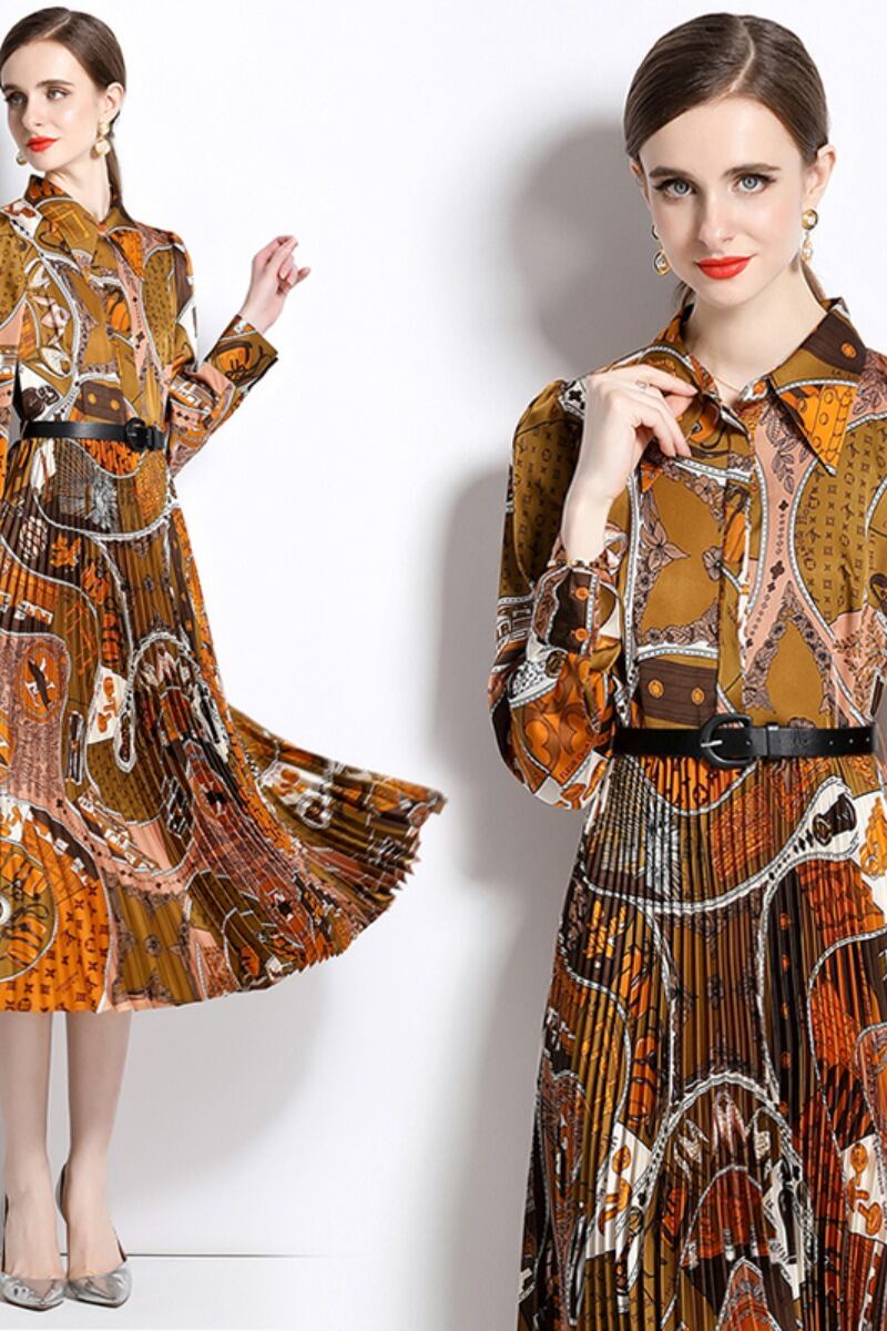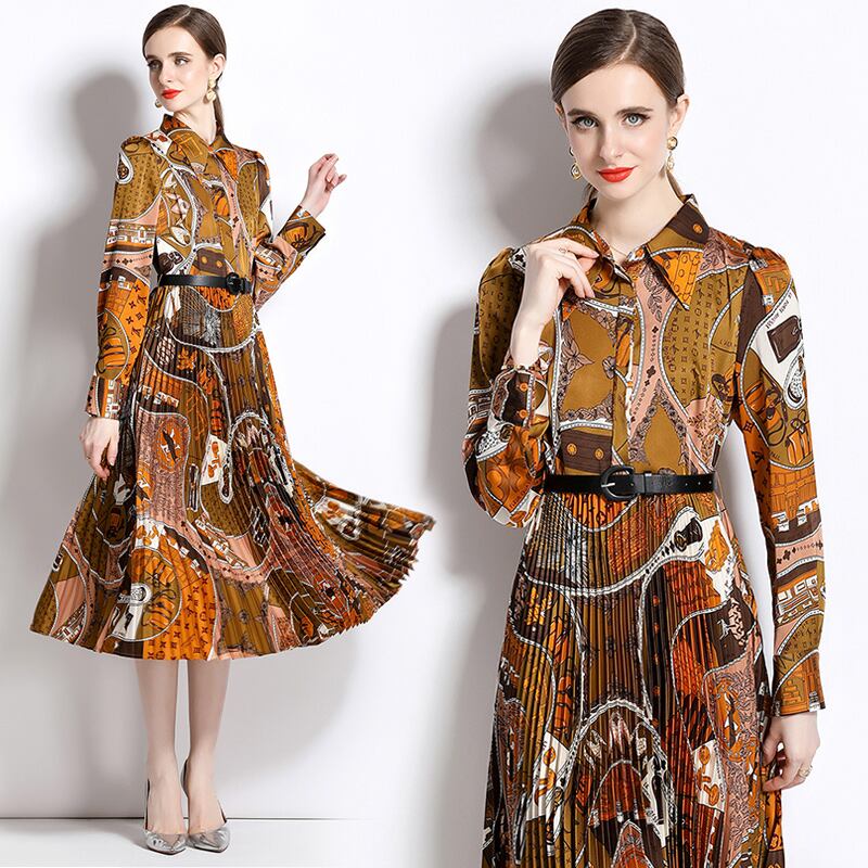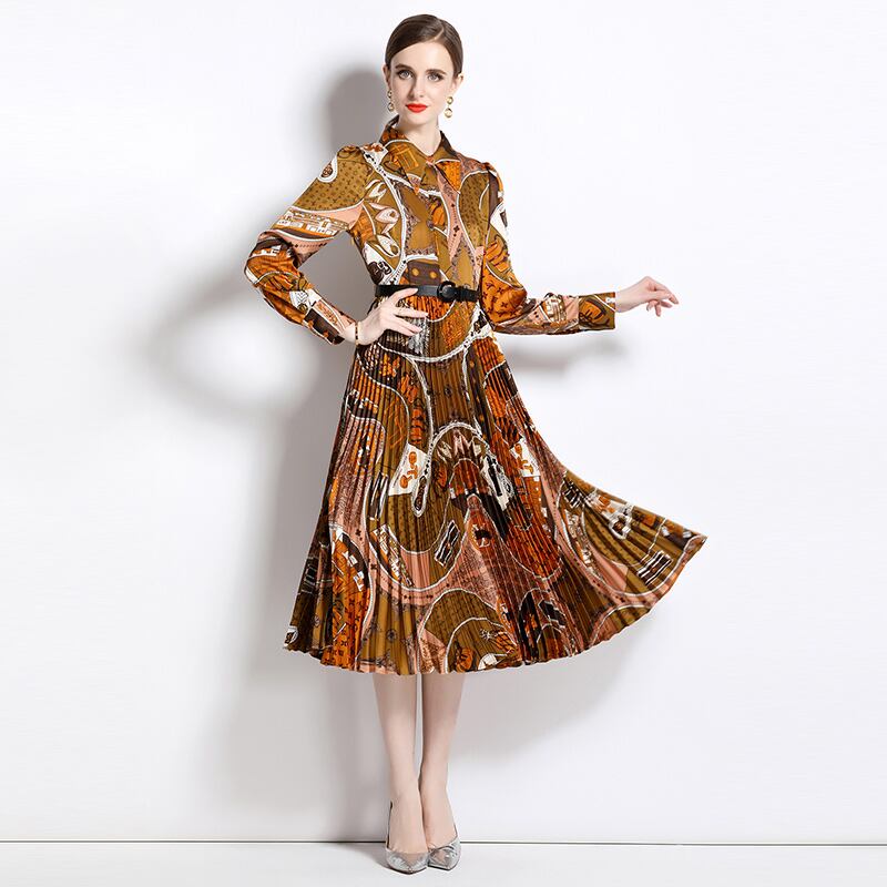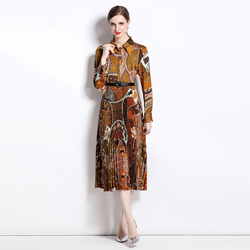 初回送料無料 レーディスファション長袖ワンピース プリントワンピース おしゃれワンピース