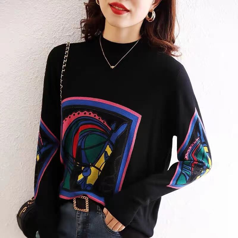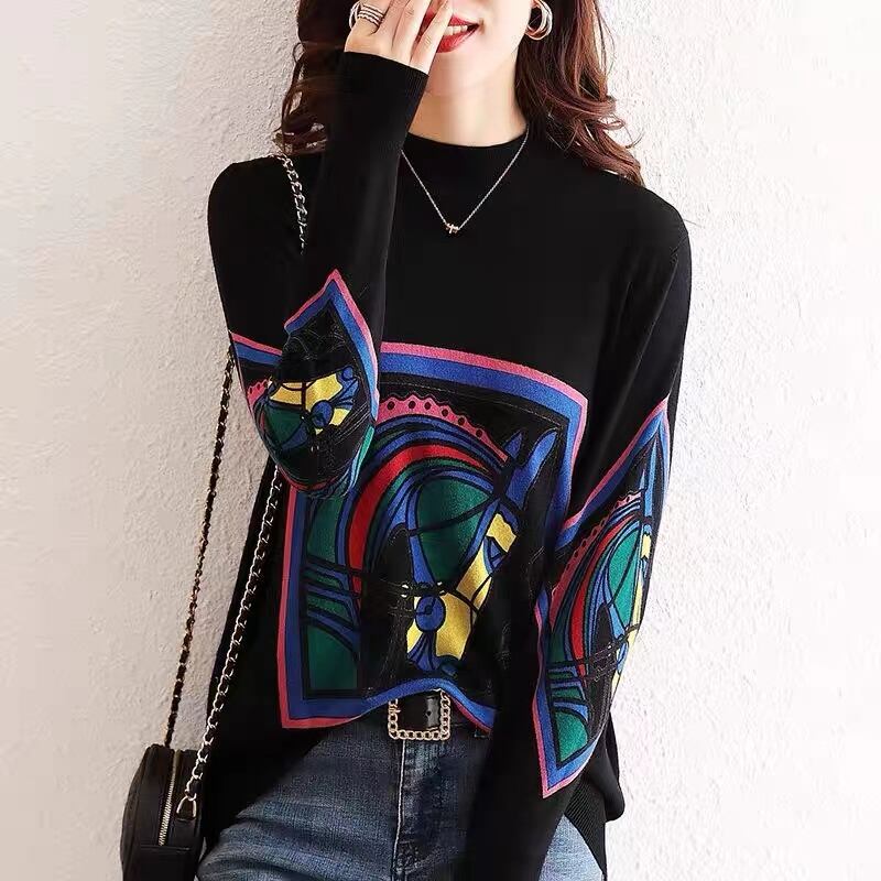 初回送料無料 長袖ハイネックトップス ゆったりサイズブラウス レーディスファション商品