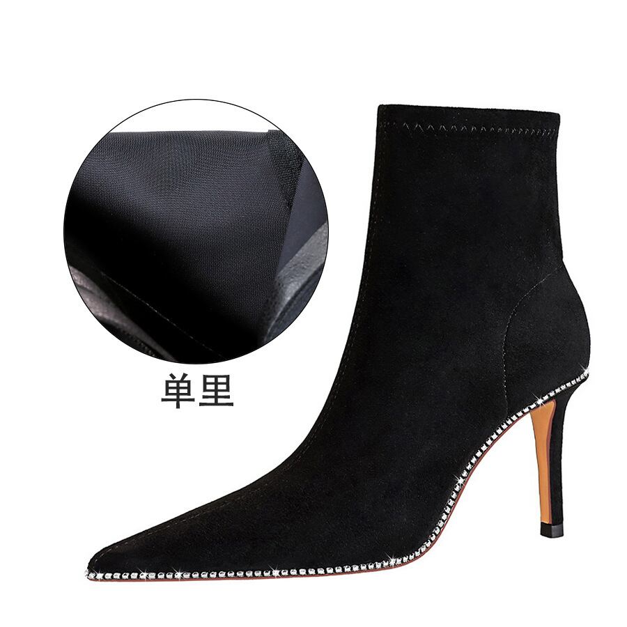 初回送料無料人気ショートブーツ ラインストーン セクシー ハイヒール スエード上品