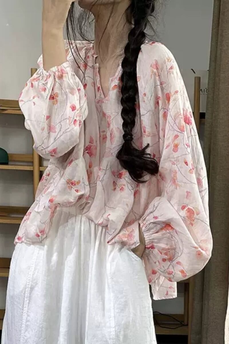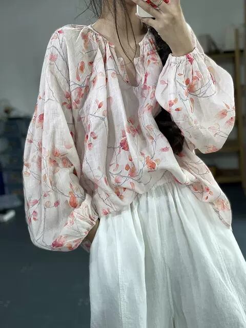 初回送料無料 長袖トップス 上着 花柄Vネックゆったりサイズトップス レーディスファション商品