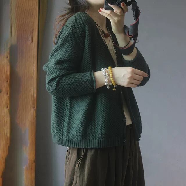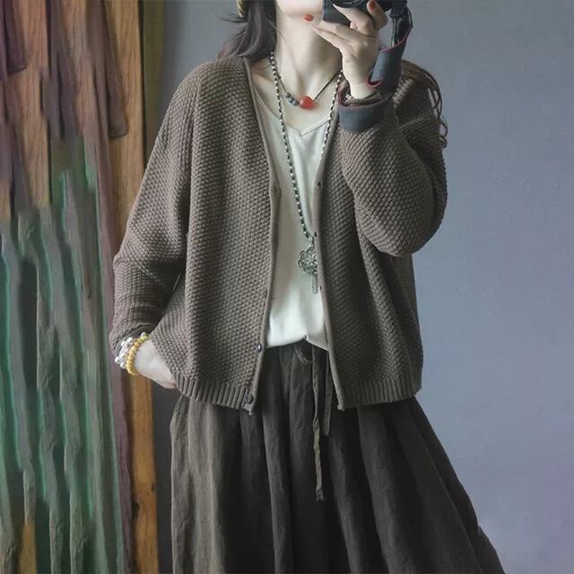 初回送料無料 カジュアルジャケット カーディガン ゆったりVネックニット上着 人気トップス