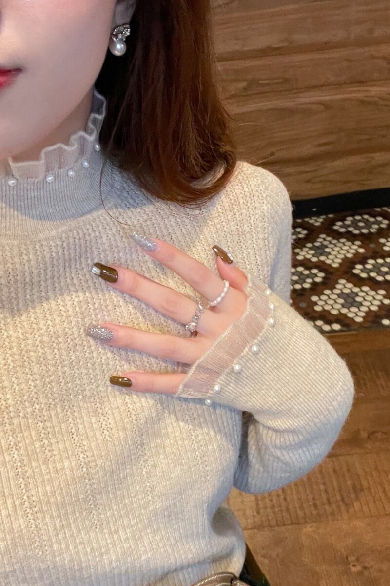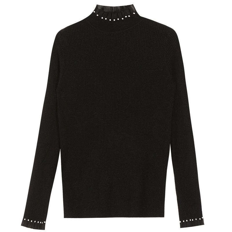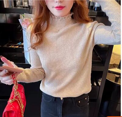 初回送料無料 ハーフハイネックレースニットトップス おしゃれなインナートップス