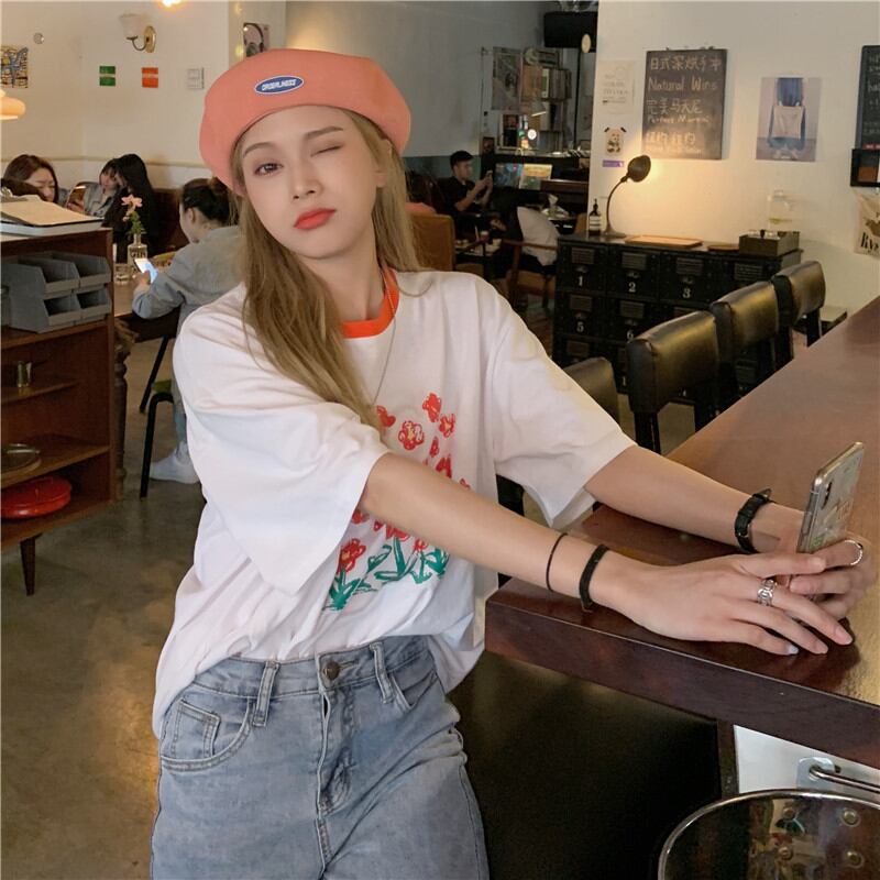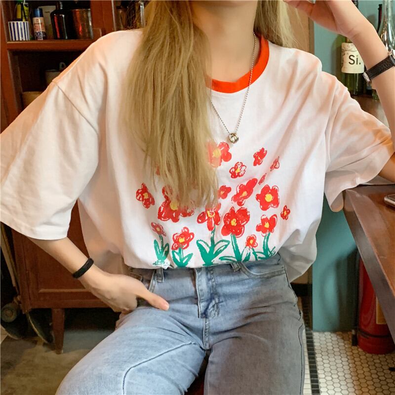初回送料無料トップ半袖ルーズプリントトップスレディースファション服