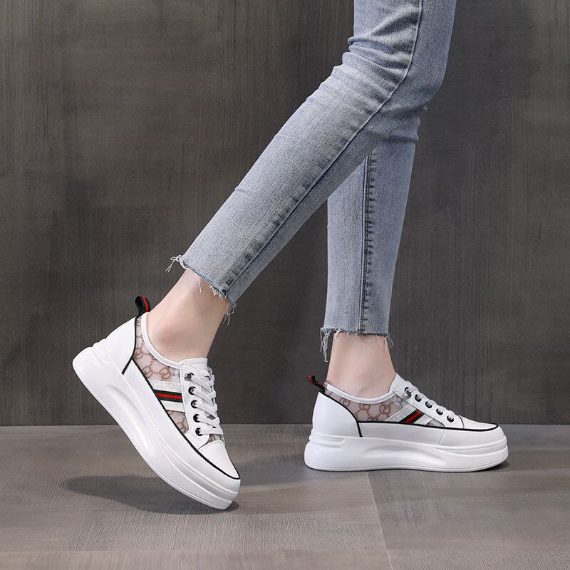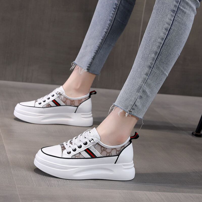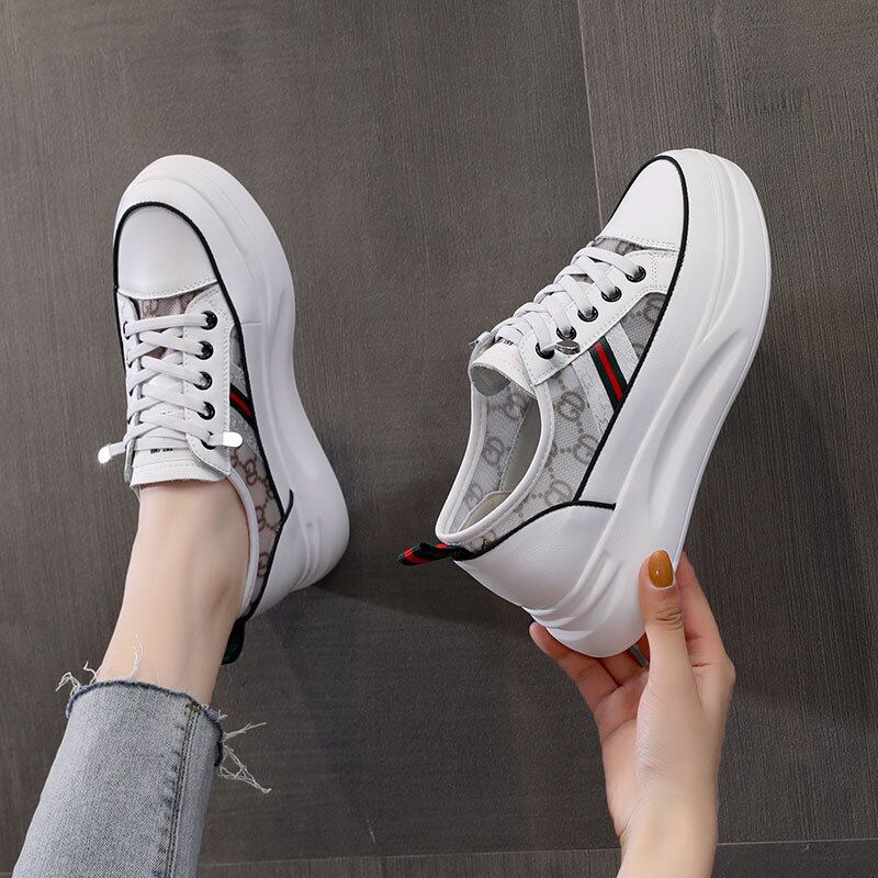初回送料無料メッシュプラットフォームホワイトシューズカジュアルスニーカー