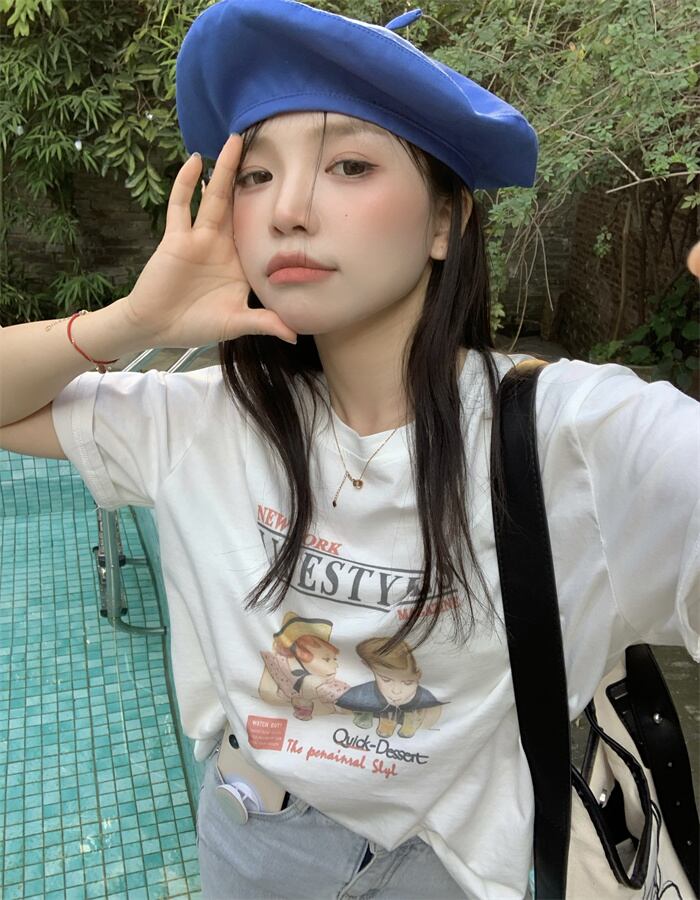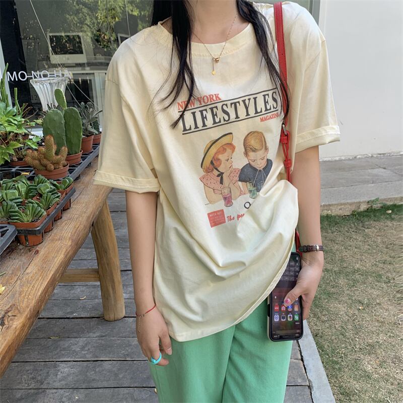 初回送料無料文字プリント気質Tシャツトップスレディースファション服