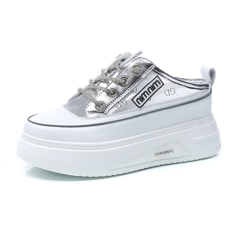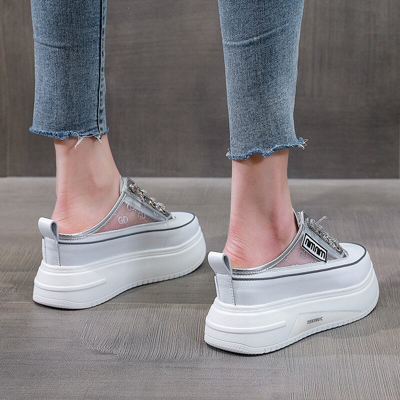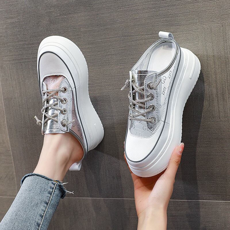 初回送料無料インナーハイトニング厚手のソール小さな白い靴ハーフスリッパレディースシューズ
