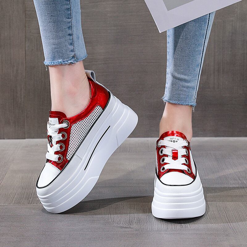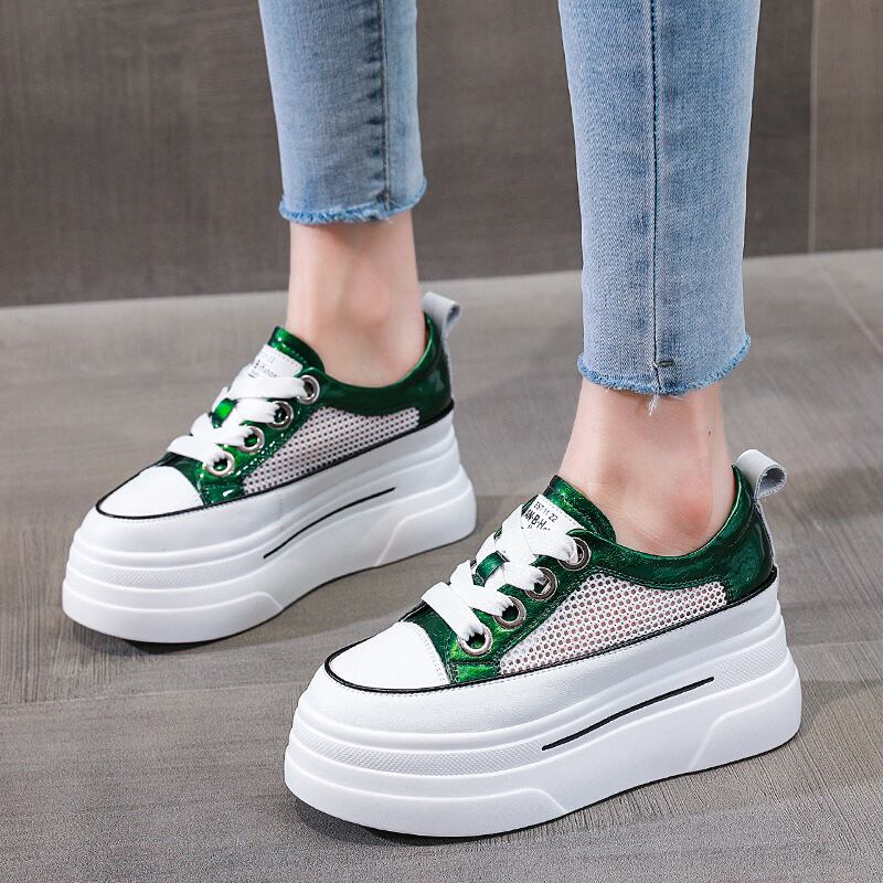 初回送料無料レディース内側の高さのある厚いソールメッシュの小さな白い靴