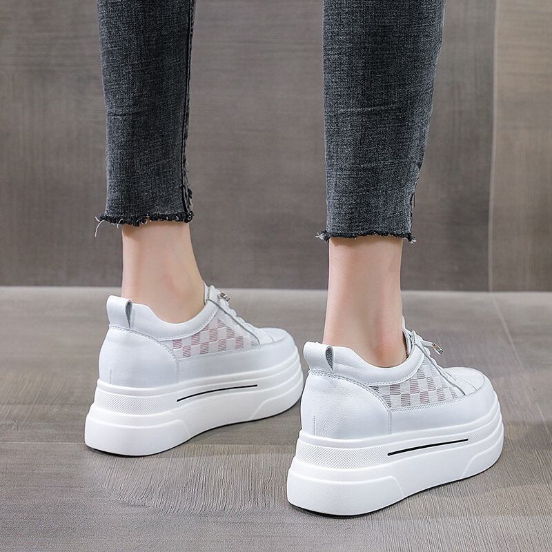 初回送料無料メッシュ表面インナーハイトニングプラットフォーム厚底白い靴