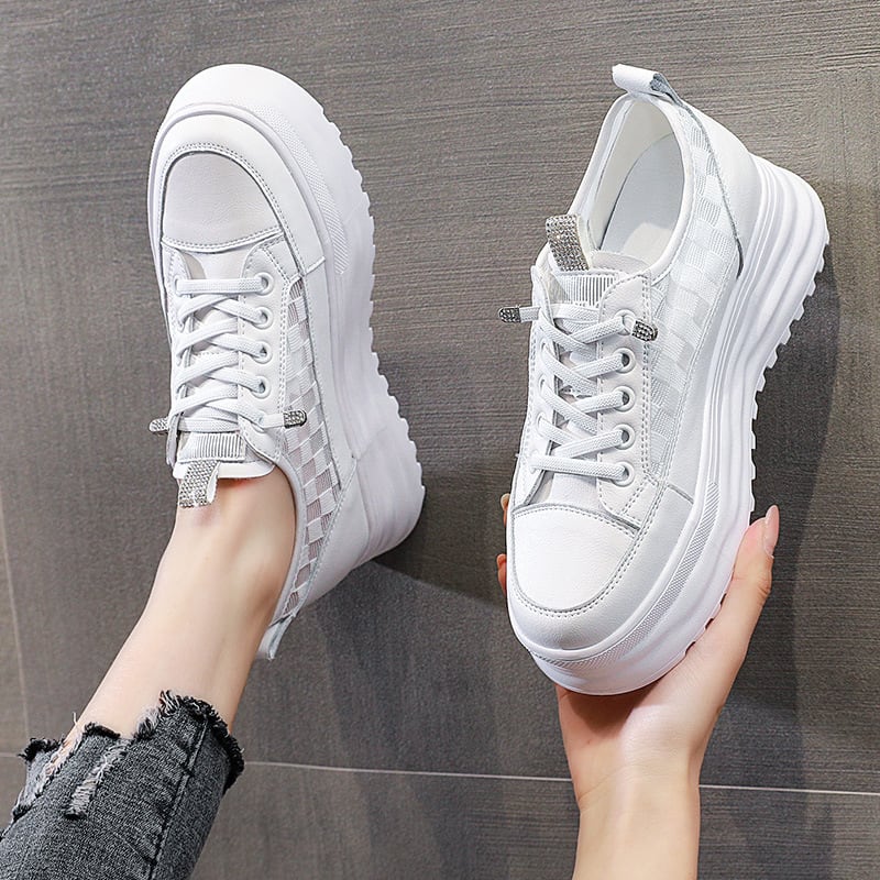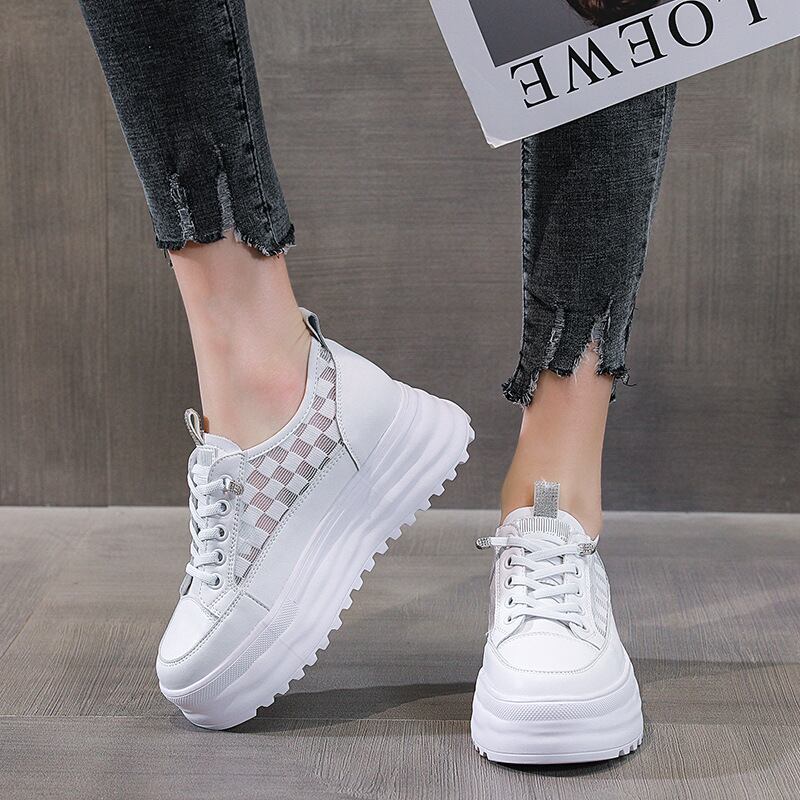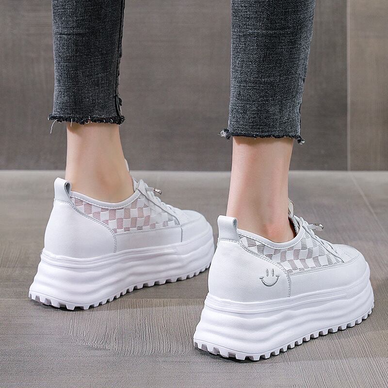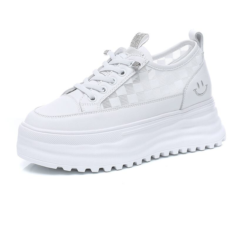 初回送料無料メッシュ表面インナーハイトニング厚底スモールホワイトシューズ
