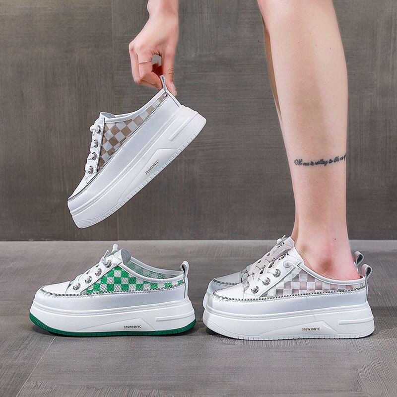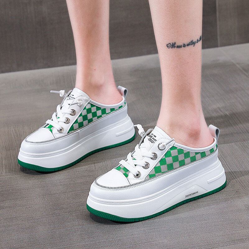 初回送料無料厚底白い靴ハーフスリッパ包頭スリッパレディースシューズ