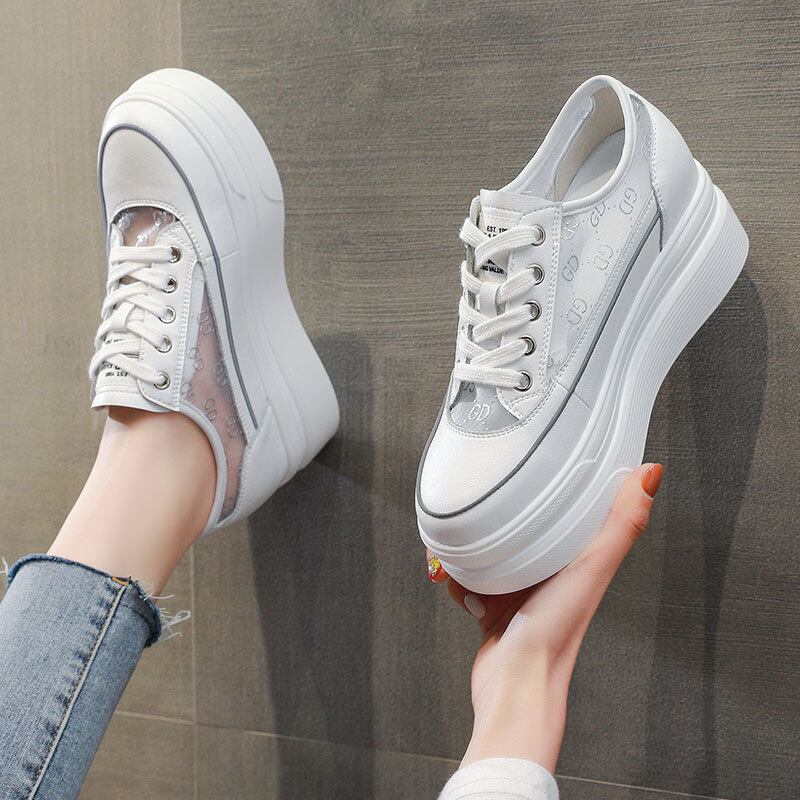 初回送料無料インナーハイトニングプラットフォームホワイトシューズレディース靴