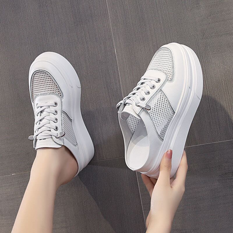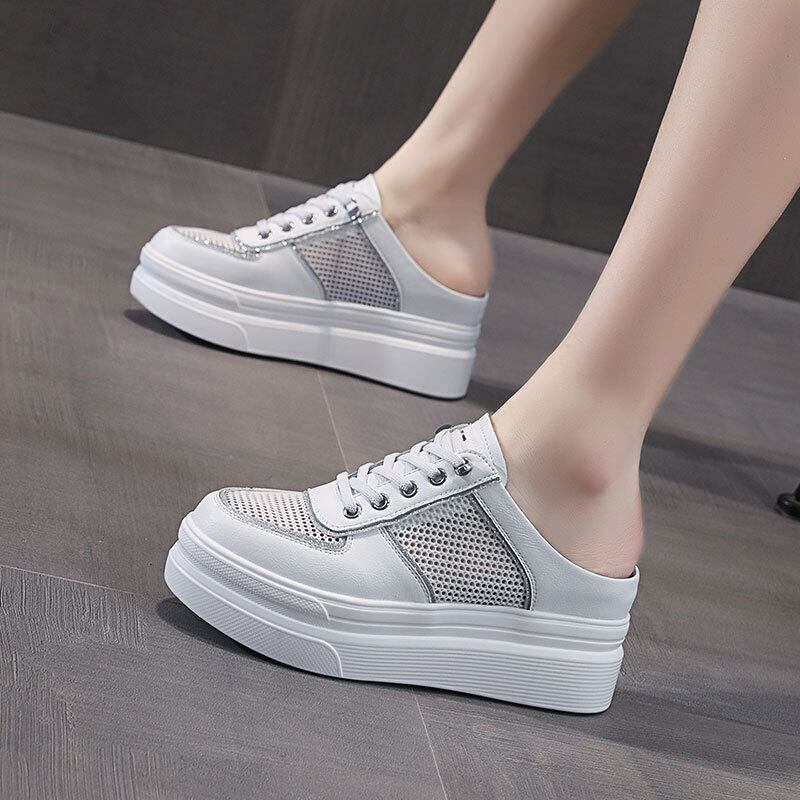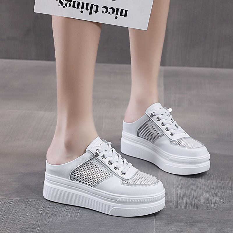 初回送料無料メッシュ表面強化プラットフォームハーフスリッパ包頭サンダル